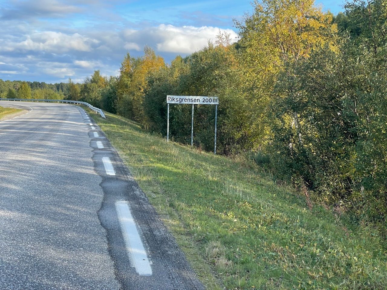 Got to the Finish border with the slowly setting sun in my back. Not much of a border to see. Theres a stereo camera a bit before the border, a bridge and the Tax station up on the next hill with a few more cameras - that’s it.