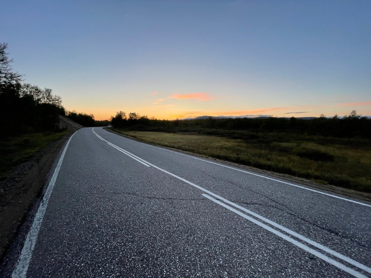 Got to Inari in the evening - especially nice with the setting sun in my back gliding down the long stretched roads. The wind calmly traveling through the Forrest and carries a scent of pine and my heart is filled by thoughts on a very very special human being.