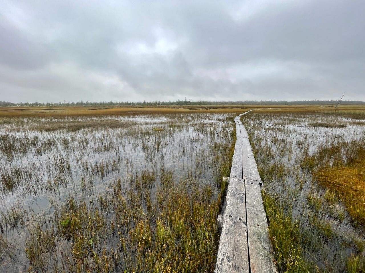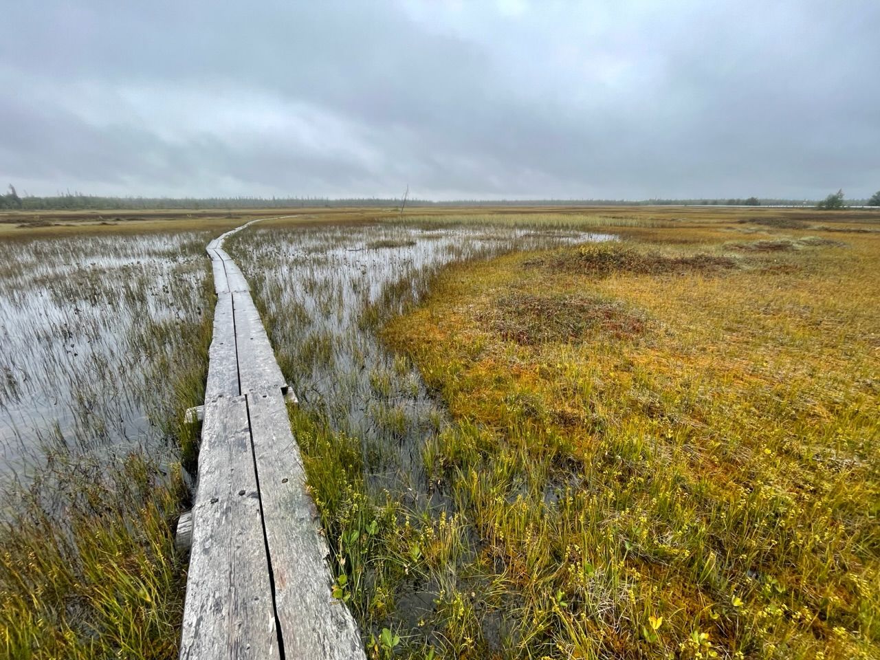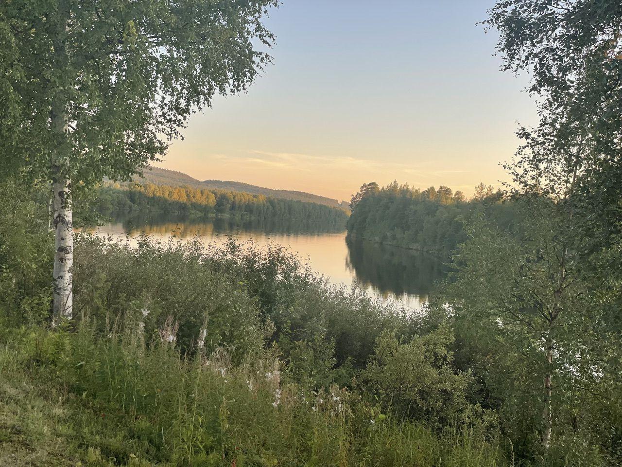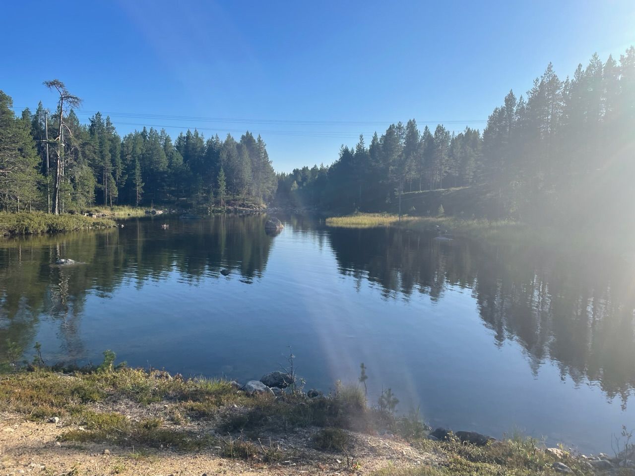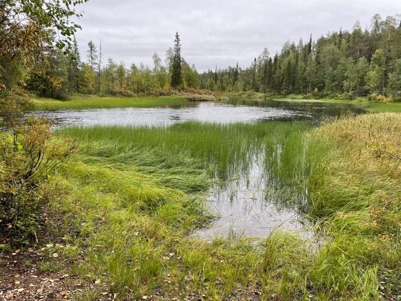 Next a steep climb with 10% incline, there's not much traffic so I can drive in a zig-zack line. From there on roads, straight into the barren forest. The vegetation in this colder and wet climate is different up here. Trees grow scars and not as tall, more birch and less pine trees, spaced out further apart with the long tundra grass in between. Swampland, lakes and rivers getting more and more frequent.