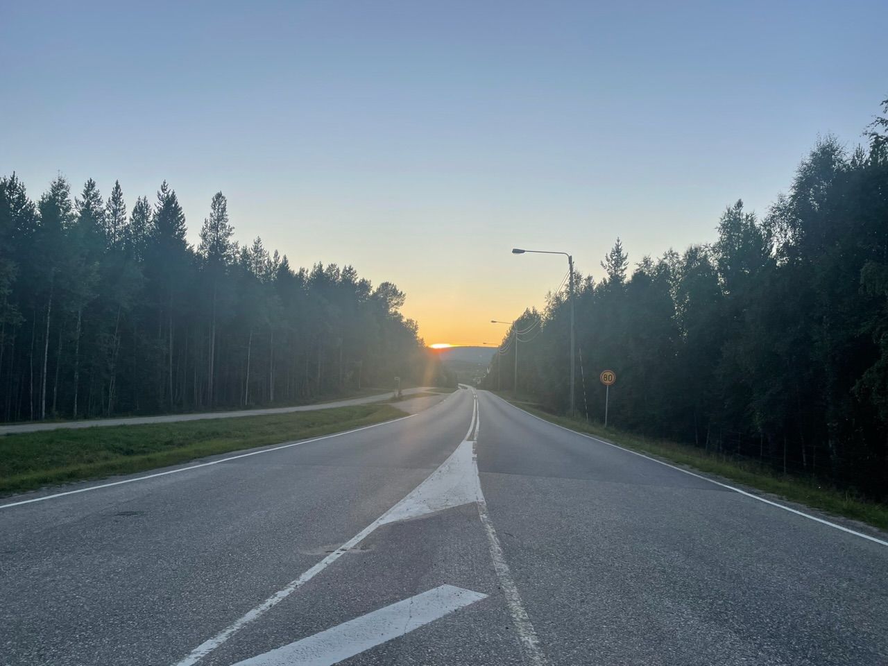 Drove until the sunset and staked my tent at the side of a Forrest road. It is now getting dark at night, had the first star sprinkled sky - there might be a chance to see aurora borealis 😃.