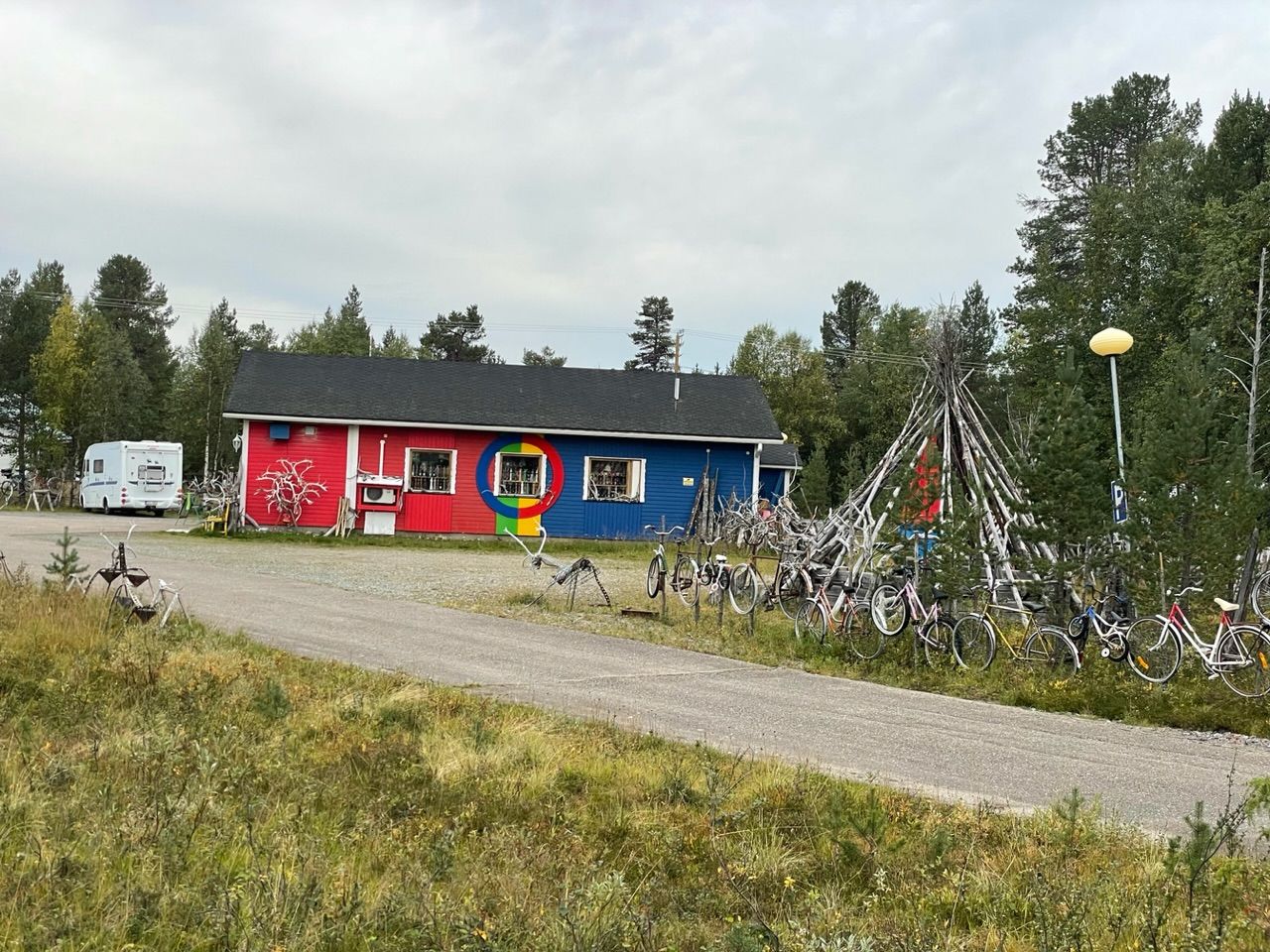Next up some hills, mountains as they call it up north to a ski ressort - the most northern in europe. It is sunny, warm and wihile sitting at restraunt there my eyes get heavy and I fall asleep for a short nap - that happens when you replace the saddle with a wide cushioned surface called couch and add Finnish backery goods as a precondition🥱💤😴.