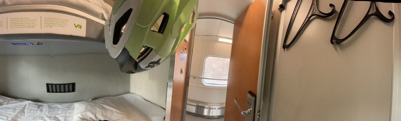 A nighttrain from the arctic circle to Helsinki, pretty much a little hotel on wheels, there are even showers on the train. The bike goes in a nice spot in a separate wagon, the cabin is on the other end of the train. Slowly sneaking through the wagons. Some of the doors need some more attention and after pressing the button to let the door slide away is retracts with a certain reluctance, but it is working eventually 😝