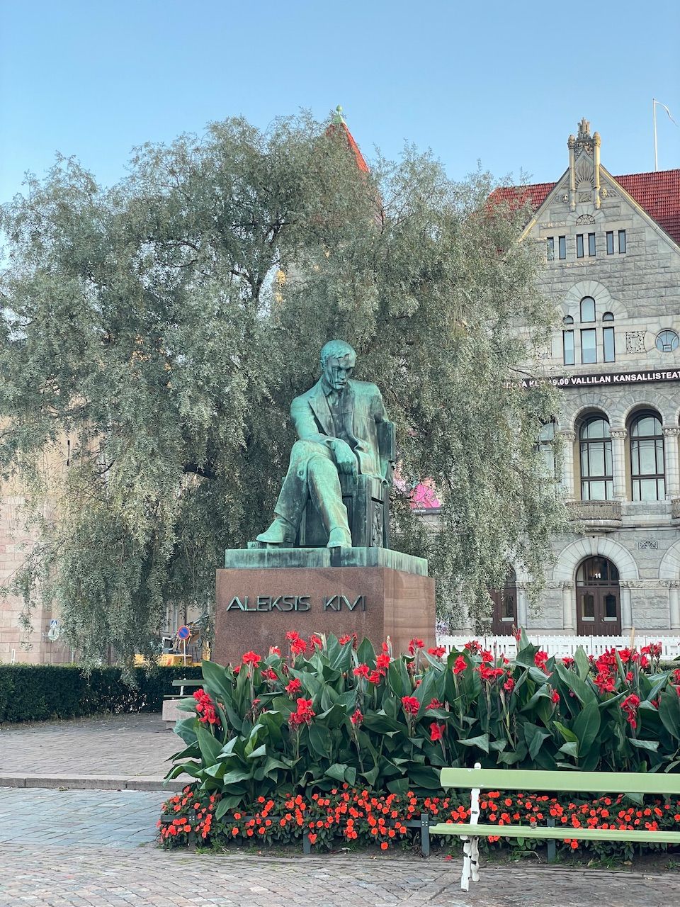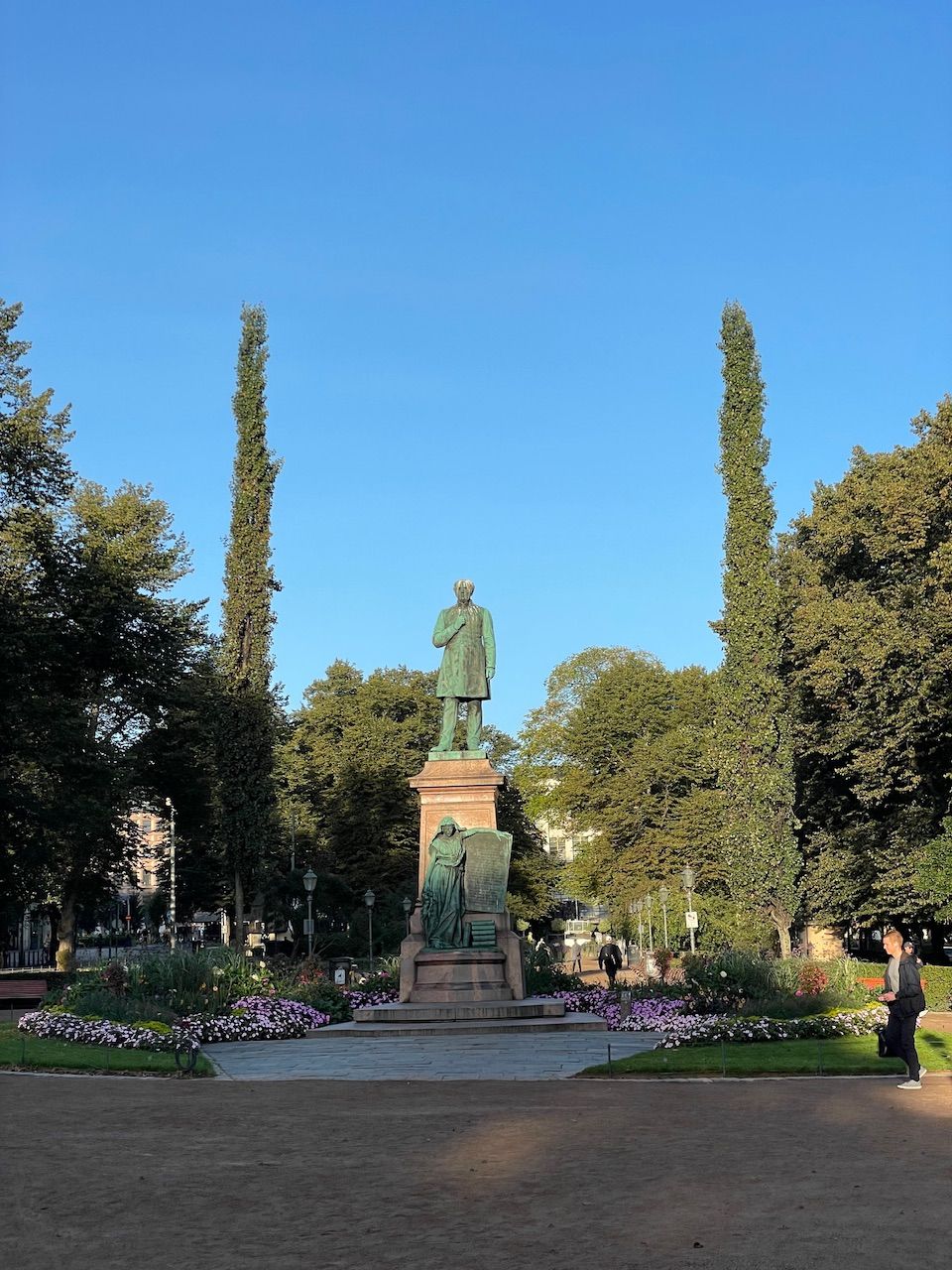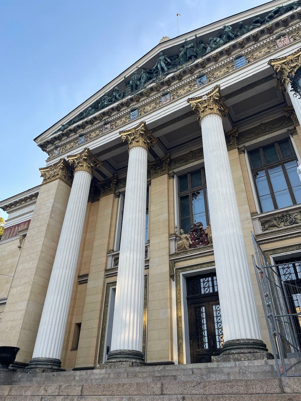 It is short before 07:00 and Helsinki is slowly waking up. The train hall reminded my of the train station in Milano - old well preserved and quite monumental. Entering the waiting hall your greeted by high sealings - more ball room the waiting hall. I push my bike out the exit, two large wooden doors and to ger my besrings I turn around. The entrance pf the train station is guardedby two huge stone sculptures a preview of the cities rich architecture.